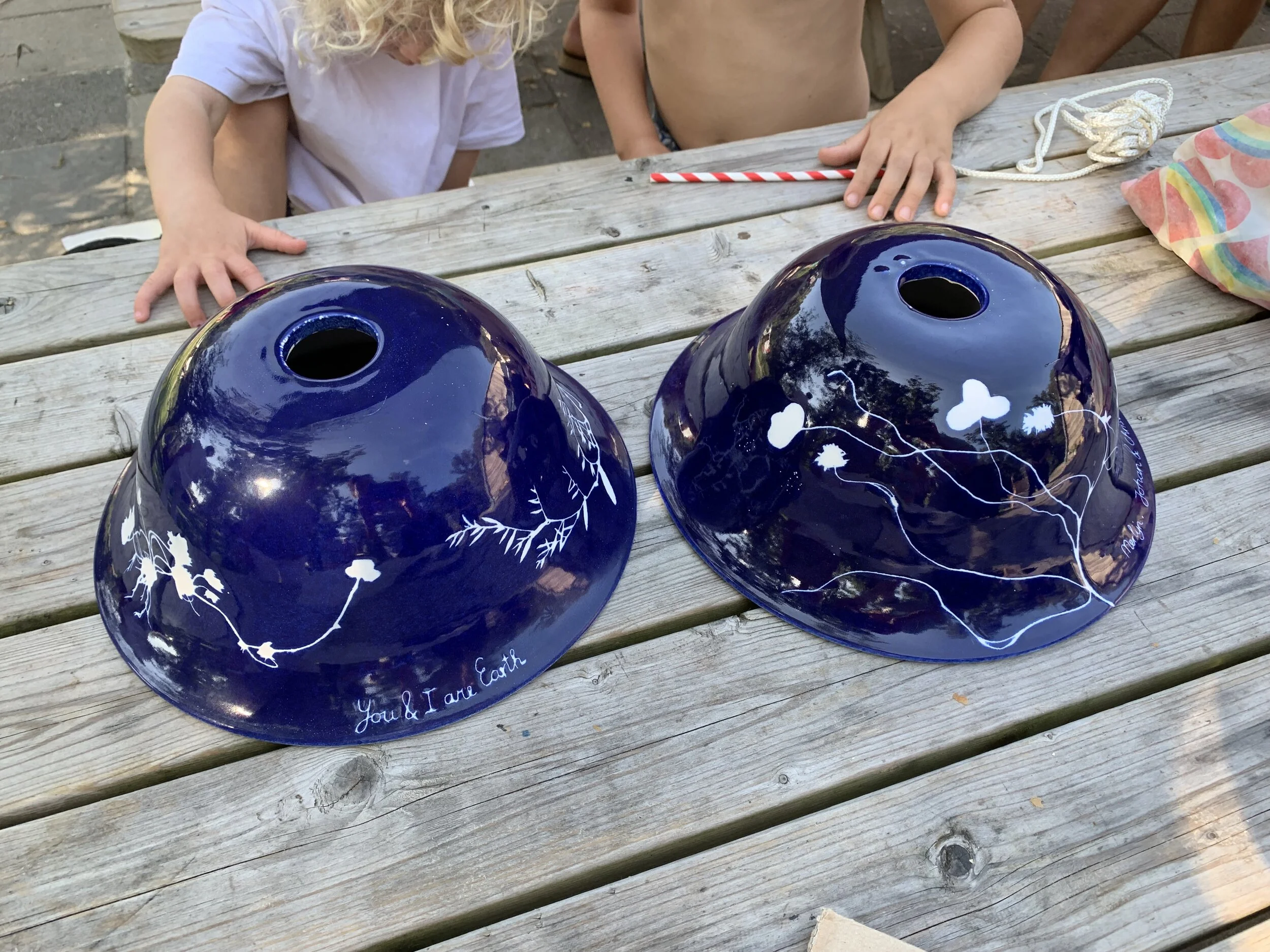 Here’s a very special little project we made to celebrate the wedding of some dear friends. No, not helmets! Pendant light shades to sit over a family dining table. The names of the family members are scribed on one piece, while the other has the ‘You & I are earth’, words we ‘borrowed’ from a 17th Century Plate which we once unearthed in the collection of the Zuiderzee Museum. A rather lovely and humbling verse about our materiality and that of the thinks we make.